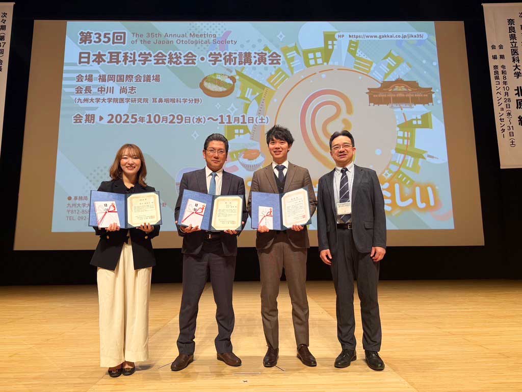 第35回日本耳科学会総会・学術講演会で吉村豪兼講師が第8回日本耳科学会賞、春日麻里子医師が第2回日本耳科学会鈴鹿スタートアップ研究助成、松浦一輝医師がYoung Investigator Awardを受賞しました